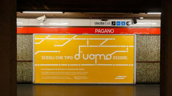 L’idea creativa di YAM112003 per ATM utilizza i nomi di alcune fermate della metropolitana e con un gioco di parole realizza messaggi diretti e di impatto: “Contro la violenza sulle donne gli uomini hanno un ruolo Centrale”, “Scegli che tipo D’uomo essere”, “Isola chi fa violenza, non chi la subisce”, “Lotto contro la violenza sulle donne”.