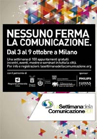 Attesi oltre 20.000 partecipanti per La Settimana della Comunicazione 2011 la prima manifestazione dedicata al mondo della comunicazione e a tutti i suoi linguaggi, che partirà il 3 ottobre a Milano. Per un’intera settimana la città sarà invasa da oltre 100 eventi aperti e gratuiti sul territorio, come un vero cantiere a cielo aperto. Dopo gli appuntamenti annuali con il design e la moda, Milano sceglie di puntare dunque i riflettori sull’affascinante mondo della comunicazione. Creativi, designer e opinion leader, ma anche appassionati, giovani ed esperti potranno partecipare a mostre, seminari e iniziative nelle più importanti location di Milano. Dai Frigoriferi Milanesi, luogo d’incontro e scambio di arte e cultura, alla Triennale di Milano, da Assolombarda a Confcommercio, fino alle sedi universitarie e agli eventi totalmente open air. Quattro percorsi tematici, Esperienza, Responsabilità, Provocazione e Aspirazione, per rappresentare in modo completo ogni processo comunicativo e guidare i visitatori alla scoperta di questo affascinate e complesso universo.