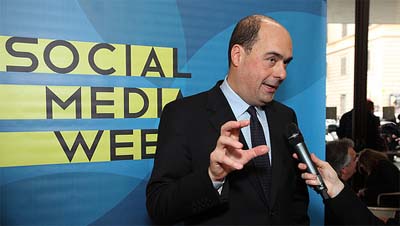 “Le Ferrovie dello Stato - ha sottolineato Moretti (a sinistra) - sono diventate, negli ultimi anni, simbolo di modernità e di eccellenza tecnologica. I nostri sistemi vengono esportati con successo in tutto il mondo, mentre i Frecciarossa hanno rivoluzionato l’idea tradizionale di viaggio lungo la penisola. L’ultima novità arrivata in casa FS, il Wi-Fi a bordo treno, e l’apprezzamento che sta registrando tra i viaggiatori, confermano che la direzione intrapresa - quella dell’innovazione - è quella giusta. Il passo dalla rete ferroviaria a quella telematica è breve: il web rappresenta per noi un’opportunità da sfruttare appieno, nonché un luogo privilegiato per incontrare i nostri clienti. Proprio per questo abbiamo voluto essere partner della Social Media Week, una manifestazione che ha l’obiettivo di promuovere e diffondere le immense potenzialità che la rete mette a disposizione di tutti, aziende comprese”.Nel suo intervento, Zingaretti (sopra) ha evidenziato come “la Provincia di Roma sia tra le istituzioni più attente ai temi dell’innovazione e del web libero, per combattere il digital divide”. Ed è in questa direzione che procede il progetto ‘Provincia Wi-Fi’, “il più grande progetto italiano per la diffusione di internet senza fili gratis, che ha giù più di 500 hot spot in tutto il nostro territorio. Un’esperienza che vogliamo socializzare e diffondere con ‘Free Italia Wi-Fi’, federando tutte le reti Wi-Fi esistenti nel Paese o facendone nascere di nuove, grazie alla tecnologia che metteremo a disposizione di chi ne avrà bisogno”.