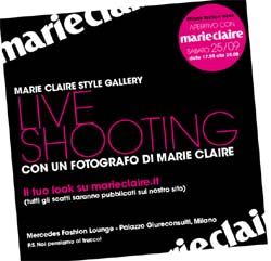 In occasione della Fashion Milano Week il direttore di Marie Claire Antonella Antonelli e la redazione aspettano tutte le lettrici per un aperitivo. L’appuntamento è per sabato 25 settembre dalle 17 alle 20 presso la Mercedes Fashion Lounge al Palazzo Giureconsulti in piazza Mercanti a Milano. Durante l'evento ci sarà un live shooting con un fotografo di Marie Claire, tutti gli scatti saranno pubblicati per una speciale gallery su www.marieclaire.it. Inoltre, i makeup artist di Givenchy saranno a disposizione delle partecipanti per aiutarle a scoprire il look più adatto al loro.