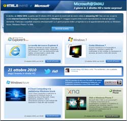 21 ottobre ore 14.30, Smau, Milano. Sono queste le coordinate dell'evento che lancia Internet Explorer 9, l'ultima versione del browser targato Microsoft. Ancora una volta Microsoft ha scelto HTML.it quale media partner esclusivo per l’Italia per la diretta della presentazione in live streaming HD. Un minisito dedicato raccoglie contenuti e approfondimenti su IE 9 e le altre novità presentate da Microsoft allo Smau, pubblicati sulle diverse testate del network editoriale di Gruppo HTML. Per assistere all’evento virtuale, condotto a quattro mani da Microsoft Italia e HTML.it, gli utenti possono compilare un apposito form.
