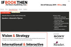 Bookrepublic e 4IT Group, in partnership con Promedia, società che supporta e affianca gli editori nel processo di trasformazione verso la nuova era tecnologica fatta sia di carta che di contenuti digitali, organizzano 'If book then', il primo evento internazionale dedicato al digital publishing che avrà luogo giovedì 3 febbraio dalle 9.00 alle 18.30 presso il Nohw hotel in via Tortona, 35 a Milano.L'evento è dedicato a tutti coloro che vogliono avere una visione strategica dell’editoria digitale su alcuni dei temi che conteranno per i prossimi sei/dodici mesi. Interamente in lingua inglese, ospita keynote speaker da TOC, Books in Browsers, SXSWi, Digital Book World: l’obiettivo dichiarato è di portare in Italia la discussione internazionale sui temi dell’editoria digitale.