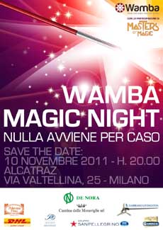 Wamba e Athena Onlus (WAO) si avvale sin dalla sua costituzione della collaborazione pro-bono di Saatchi & Saatchi Italia che ne ha curato tutta la comunicazione coordinata. Un sostegno che si rinnova anche in Wamba Magic Night!, serata benefica a sostegno dei progetti SVS donna aiuta donna,Centro educazione permanente e Catholic Hospital Wamba (CHW - Kenia) in scena Giovedì 10 novembre, alla discoteca Alcatraz di Milano. La serata, realizzata con il prezioso contributo tra gli altri di Gruppo De Nora, Poltrona Frau, San Pellegrino, Il Gabbiano Livingstone, DHL, Cantina delle Meraviglie, Arturo Vogliazzi, De Besi-Di Giacomo e Ambrosi, sarà all’insegna della magia per vivere una notte ricca di emozioni e di numeri strabilianti in compagnia degli straordinari artisti di Masters of Magic.