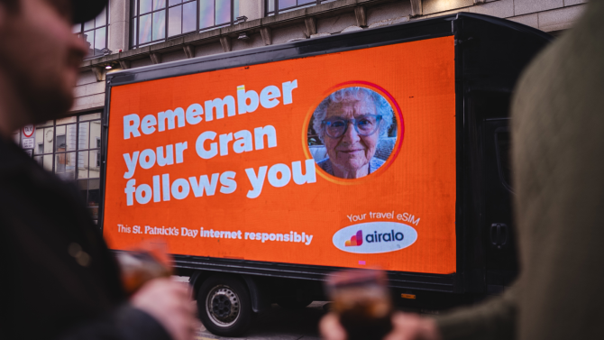 Proprio questo weekend, con l’inizio dei festeggiamenti, Airalo ha scelto il canale di comunicazione più adatto per parlare ai suoi clienti nel bel mezzo della festa: il pub! Grazie a un’operazione di "takeover" nei locali O'Neill's e Wild Duck, entrambi nella zona di Temple Bar, l’intera location è stata tappezzata di messaggi che invitavano i visitatori a "usare internet responsabilmente".
