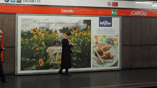 Con i poster formato maxi, distribuiti su spazi gestiti da IGPDEcaux in un centinaio stazioni metro di Roma e Milano, Bergader si assicura una elevatissima pressione e un’alta audience potenziale di contatti.
