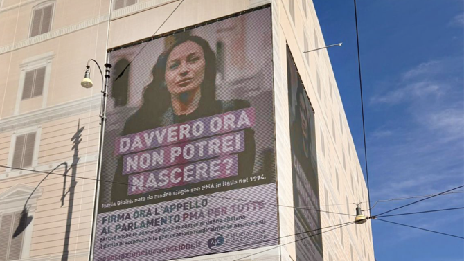 L’affissione, visibile fino al 18 settembre in Piazza Risorgimento, angolo via Ottaviano 9 (Roma), ha come protagonista Maria Giulia, 31enne romana, nata nel 1994 da una madre single che all’epoca ha potuto ricorrere in Italia alla PMA. Oggi, con l’attuale divieto, quella stessa possibilità le sarebbe negata: “Davvero oggi non potrei nascere?” è la domanda che campeggia accanto al suo volto.