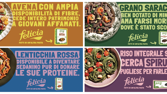 Una nuova creatività, firmata da 6.14 Creative Licensing, consente agli ingredienti dei prodotti Felicia di raccontare in prima persona le proprietà nutrizionali, in maniera briosa e disincantata. Avena, Grano Saraceno, Lenticchie Rosse, Riso Integrale e Spirulina, dunque, intrattengono il vasto pubblico di cittadini, pendolari, viaggiatori, globe-trotter e stranieri che si spostano, in metrò, proponendo diverse ricette per il benessere, con un tono di voce sempre smart e di grande impatto.