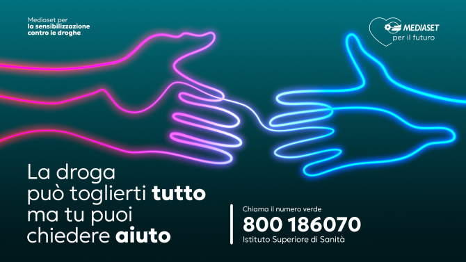 L’iniziativa — in onda su tutti i canali del Gruppo, sulle piattaforme social, in radio, nei circuiti digital out of home e sul sito dedicato www.mediasetperilfuturo.it — si inserisce nel progetto “A un passo dal vuoto – storie di droga e di rinascita”, raccontato su Mediaset Infinity.