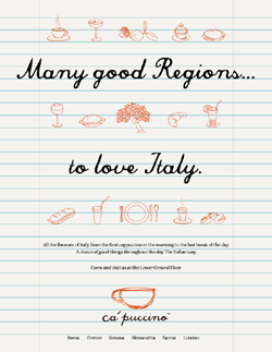 Qualità e stile italiano hanno permesso a Ca’puccino di conquistare italiani e inglesi tanto da essere scelto da Mohammed Al Fayed per i suoi magazzini londinesi Harrods. Un marchio che parla italiano e guarda al mondo scegliendo nella comunicazione The Ad Store Italia.
