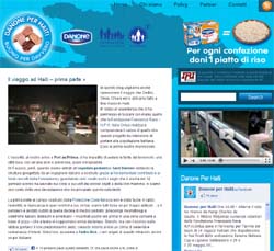 Nasce il blog www.danoneperhaiti.it, legato all’iniziativa voluta dai dipendenti Danone che permette, per ogni confezione del nuovo yogurt acquistata, di donare un piatto di riso ai bambini di Haiti. Oltre al blog sono disponibili anche una pagina Facebook e un profiloTwitter, attraverso i quali l’azienda vuole non solo informare e sensibilizzare, ma costruire un luogo di condivisione e di partecipazione aperto.