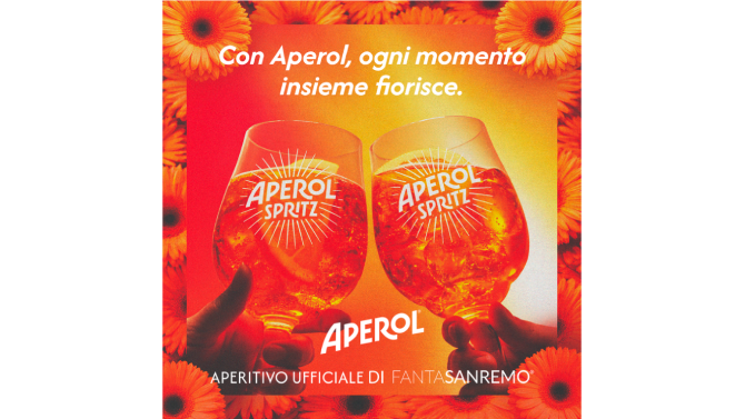 All’interno dell’app FantaSanremo, la lega Aperol trasforma il gioco più amato del Festival in un’occasione di condivisione e divertimento collettivo. Il brand invita la community a partecipare, commentare e brindare insieme, amplificando lo spirito del Festival dentro e fuori dallo schermo. A rendere l’esperienza ancora più coinvolgente, due bonus speciali, che vedranno protagonisti il fiore arancione e un brindisi con Aperol spritz insieme al team FantaSanremo, pensati per valorizzare i momenti più iconici della gara e incentivare la partecipazione, aumentando engagement e conversazioni social.