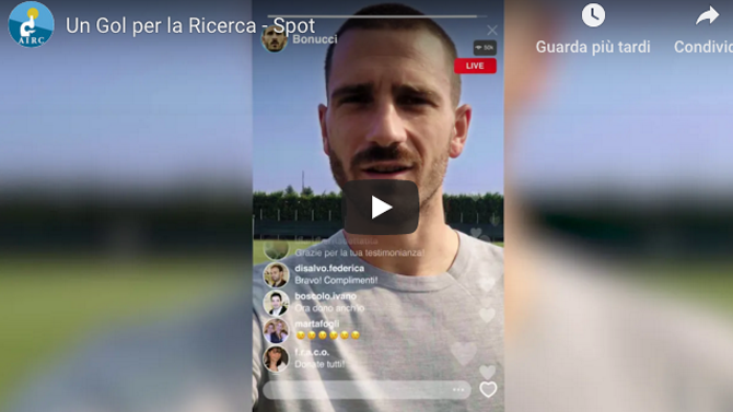 I 4 calciatori danno vita ad una sorta di circolo virtuoso che si snoda attraverso stories, post online, messaggi privati e in chat di gruppo, SMS, coinvolgono tifosi, ricercatori, persone che hanno attraversato e sconfitto la malattia. Tutti coinvolti nella stessa partita, che metaforicamente termina in un campo di calcio, dove grazie ad un assist di Leo Bonucci, un piccolo calciatore segna un gol. Realizzato grazie all’aiuto di tutti.