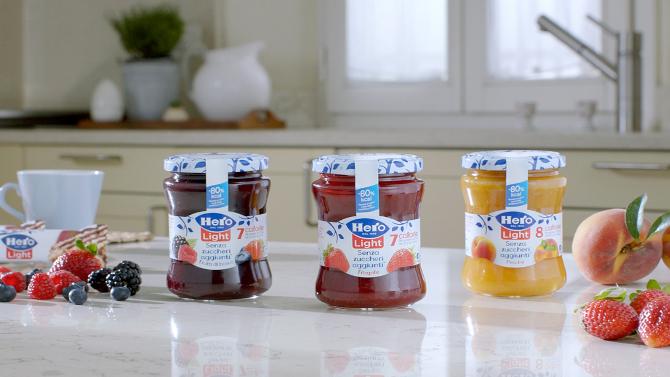 La nuova formulazione della Hero Light contiene l’80% di calorie in meno rispetto alla confettura tradizionale Hero (mediamente 42 kcal per 100 g contro le 72 kcal della ricetta precedente).