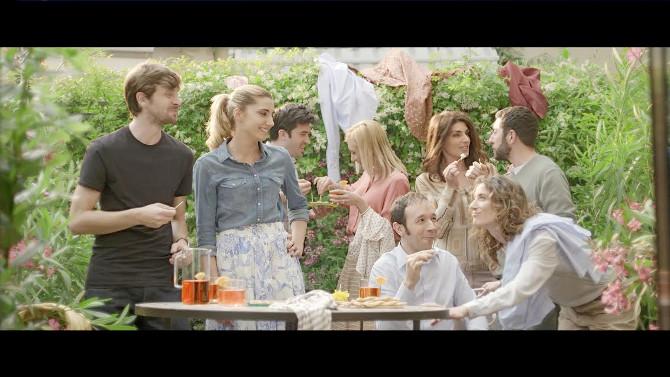 La donna è talmente incuriosita dal loro spuntino da inventarsi un pretesto per fare un assaggio: lascia maliziosamente cadere giù una delle camicie del marito. E proprio perché “Ogni scusa è buona per camosciare con AperiFresco Camoscio d’Oro”, quando la porta del piano di sotto suonerà, la giovane padrona di casa si troverà davanti i vicini, scesi in coppia a recuperare la camicia. E non appena i nuovi arrivati inizieranno a gustare i bocconcini incustoditi sul terrazzo, altri abitanti del condominio, “lasciando” cadere altre camicie, daranno vita a una situazione di convivialità inaspettata, tutta generata dalla bontà di AperiFresco Camoscio d'Oro.
