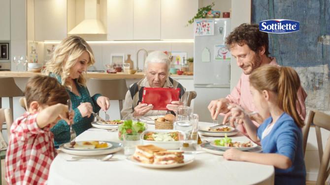 Grazie all’aiuto di quest’ultima, negli spot girati da Luca Lucini la simpatica nonnina imparerà i segreti dei social network cominciando a postare e a condividere ricette semplici ma rese irresistibili da Sottilette. Ricette che riceveranno…'un botto di Mi piace' da tutti gli amici 'social'.