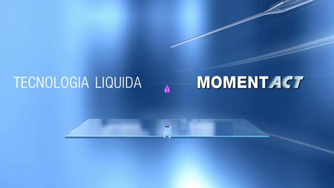 Come soluzione il film presenta la tecnologia liquida di Momentact partendo dal contenuto tecnologico della capsula. Una preziosa e piccola goccia di principio attivo scende da una pipetta di cristallo. La vediamo raggiungere al ralenti un simbolico vetrino da laboratorio farmaceutico, entrare in un piccolo contenitore e trasformarsi nella capsula di Momentact, facile da deglutire.