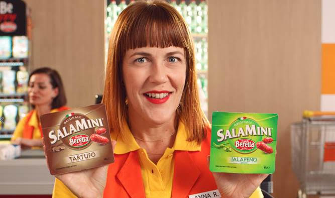 Il primo della serie è lo spot tv su Fresca Salumiera, che vede protagonisti una simpatica cassiera, una loquace bimba con la sua mamma e Rexy, l’ormai famoso T-REX di peluche amico dei bambini che non vedeva l’ora di essere nuovamente coinvolto! Gioco, simpatia e allegria distinguono i dialoghi dei protagonisti e sono valori chiave caratteristici anche degli altri tre spot, in cui ritroviamo la spigliata cassiera, che, di volta in volta, si interfaccia a personaggi differenti: un adulto che non resiste alla tentazione di assaggiare il suo aperitivo alla cassa, giovani ragazzi che fanno la spesa per una festa divertente... Ad esaltare il tutto, inoltre, ricorre sempre il claim: “Beretta la voglia non aspetta”, che richiama l’impazienza che assale chiunque davanti a prodotti che stuzzicano l’appetito e la volontà di condivisione, proprio come quelli di Beretta.
