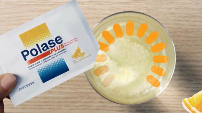 Una donna cammina in pieno sole, il caldo la spossa, ed ecco che il video si interrompe e appare la fatidica rotella. L’azione riparte a stento per interrompersi di nuovo. Fino a che arriva la soluzione, Polase Plus, l’integratore alimentare con una caratteristica che lo rende efficace e veloce nell’azione: i sali di Magnesio e Potassio sono organici, quindi più assimilabili.
