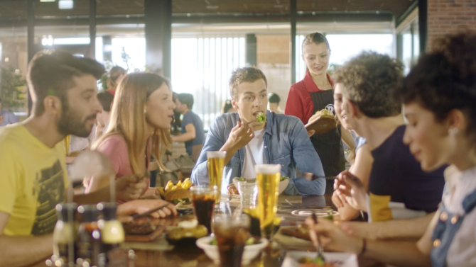 Lo spot abbraccia tutti i target del brand: lavoratori in pausa pranzo, giovani e famiglie con bambini.