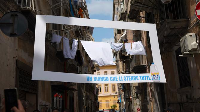 Il punto di forza, in questo caso è stata la tempistica, la capacità di intervenire in maniera pertinente in uno spazio specifico - Napoli - nell’anno in cui la città viveva il momento di hype più significativo della storia recente, tra scudetto del Napoli e rinascita turistica. Su questo scenario si innesta un’idea semplice ed efficace, che si concentra sui benefici del prodotto. La strategia ha quindi puntato su un insight culturale del luogo, ovvero l’abitudine di stendere i panni al sole. Per raggiungere l’obiettivo abbiamo trasformato i balconi e le finestre della città in un nuovo media, ignorato dai concorrenti, ma sempre sotto gli occhi di tutti. Il famoso testimonial utilizzato è stato il bucato steso e realmente pulito.