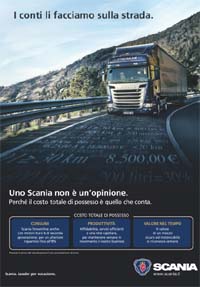 Adpresscommunications si è aggiudicata la campagna stampa istituzionale Scania, relativa al Costo Totale di Possesso, a seguito di una consultazione creativa che ha coinvolto altre due agenzie. La campagna istituzionale, in uscita sui periodici di settore dedicati al trasporto ed alla mobilità dei mezzi pesanti, verte sulla certezza dei numeri, che rendono la scelta di un mezzo Scania una sicurezza sempre sotto controllo.