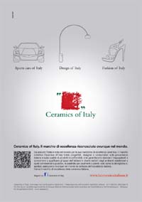 Proprio per rendere più dinamica l’immagine di Ceramics of Italy nel mondo, sono stati inseriti sulla pagina il codice QR, che rimanda alla sezione Prodotti & Tendenze del sito www.laceramicaitaliana.it, e i riferimenti alla pagina Facebook.