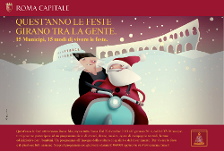 romano - intraprendono un viaggio ideale per la città, per portare aria di festa in ogni Municipio. Roma è rappresentata dall’acquedotto e dal Colosseo, due simboli della città che scandiscono l’itinerario degli eventi, dal centro alle periferie.Un tono di comunicazione spensierato e leggero che invita a vivere la città e le festività Natalizie, partendo proprio dalla strada, dalle piazze e dai quartieri.