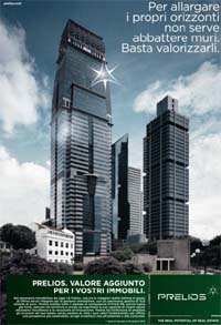 Dal rebranding di Pirelli Re nasce Prelios, la nuova realtà operativa sul mercato italiano e internazionale nella gestione del patrimonio immobiliare. In seguito a una gara tra Y&R, M&C Saatchi e DDB, alla prima agenzia sono state la pianificazione internazionale, il digital e la campagna stampa periodica in Italia. Alla seconda la realizzazione della campagna su stampa quotidiana. La pianificazione è gestita da Carat.