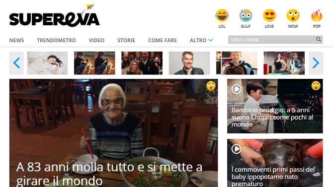 Per questo il sistema editoriale alla base di superEva si avvale di una dashboard che evidenzia gli argomenti più cercati e discussi in Rete attraverso l’analisi sui social e i motori di ricerca. Gli argomenti sono poi trasformati in contenuti da un team di editor in crowdsourcing che pubblica 1.200–1.500 fra articoli, fotogallerie e video ogni mese – ottimizzati per ogni tipo di device – , in tre aree principali: Crazy News (record, video virali, oggetti strani, luoghi incredibili, ecc.), Feel-Good Stories (racconti a lieto fine, storie straordinarie e/o commoventi) e Tips & How To (consigli utili, tecnologia, fai da te, salute, ecc.).