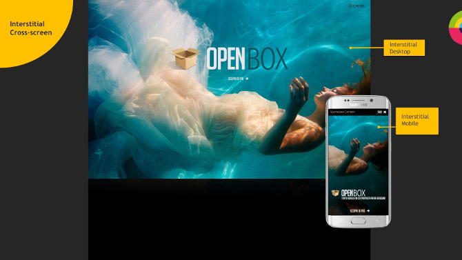 “L’obiettivo del nuovo superEva – commenta Domenico Pascuzzi, Direttore National Marketing di Italiaonline – è quello di diventare sempre di più il punto di riferimento per chi cerca contenuti trendy e feel-good e attrarre i Millennials, un target molto attivo sui canali social e difficile da raggiungere per gli inserzionisti. Sul fronte dell’offerta pubblicitaria, tutta l’inventory di superEva, così come del resto tutto il nostro network, è disponibile in modalità programmatic e su base dato attraverso la nostra DMP proprietaria. Oltre a puntare sui video e sul native, lanciamo un nuovo formato premium: l’interstitial cross-device (nella foto), un formato overlay che permette pianificazioni su desktop e mobile con robuste garanzie di viewability ed engagement e dal quale ci aspettiamo livelli di clickthrough nell’ordine del 5%”.