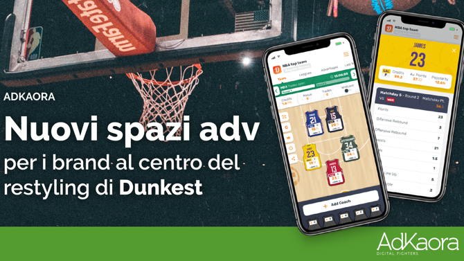 La collaborazione con Dunkest e il suo editore Fantaking - leader in Italia nello sviluppo di Fantasy Games dedicati allo sport e punto di riferimento per risultati in tempo reale, statistiche avanzate e game entertaining - rappresenta un importante tassello dell’offerta web e in app di formati pubblicitari di AdKaora, che quest’anno ha visto l’ingresso di nuovi importanti player.