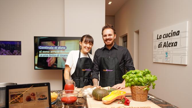 Quest’anno Alexa è stata protagonista nelle cucine degli utenti in Italia attraverso la Skill di GialloZafferano, il food media brand più amato in Italia: mentre si chiacchiera in casa, si lavora, si ascolta la musica o si trascorre il tempo con gli amici, l’esperienza offerta da Alexa e GialloZafferano permette di farsi aiutare nel preparare ogni genere di pietanza, grazie anche alla possibilità di impostare timer e sveglie – circa 500 milioni solo nell’ultimo anno in Italia – controllare le preparazioni da seguire, aggiungere ingredienti alla lista della spesa e consultarla una volta arrivati al supermercato. Nella foto il volto di GialloZafferano Manuel Saraceno e la creatos Aurora Cavallo).