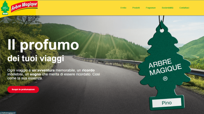 Il nuovo portale Arbre Magique® ha come protagonista il profumo, l’ingrediente principe dell’iconico profumatore d’auto. Il nuovo sito nasce dall’esigenza di fornire agli utenti un’esperienza immersiva nel mondo del profumatore che da sempre risponde alle esigenze dei suoi consumatori.