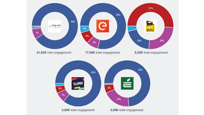 Nell’analisi svolta da Blogmeter sono state valutate anche le performance relative al total engagement, per i cinque brand risultati primi nel ranking per total interactions. Sorgenia, fornitore italiano di gas e luce dal 1999, conquista il gradino più alto del podio con un engagement di oltre 41.000 e una media di oltre 4 post al giorno pubblicati grazie alla sua strategia social improntata su logiche social-oriented, di call to action e gamification.
