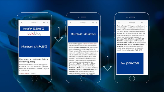 I formati adv su queste pagine si caratterizzano per la velocità di caricamento ed adattabilità alla pagina, consentendo all’utente una confortevole fruizione del contenuto da mobile ed una minor incidenza sul consumo dei dati. La perfetta aderenza al design della pagina e la sincronia dei formati preimpostati da Google (Header, Box e Masthead) - pianificabili in full domination - rendono questa offerta una nuova opportunità per i clienti.