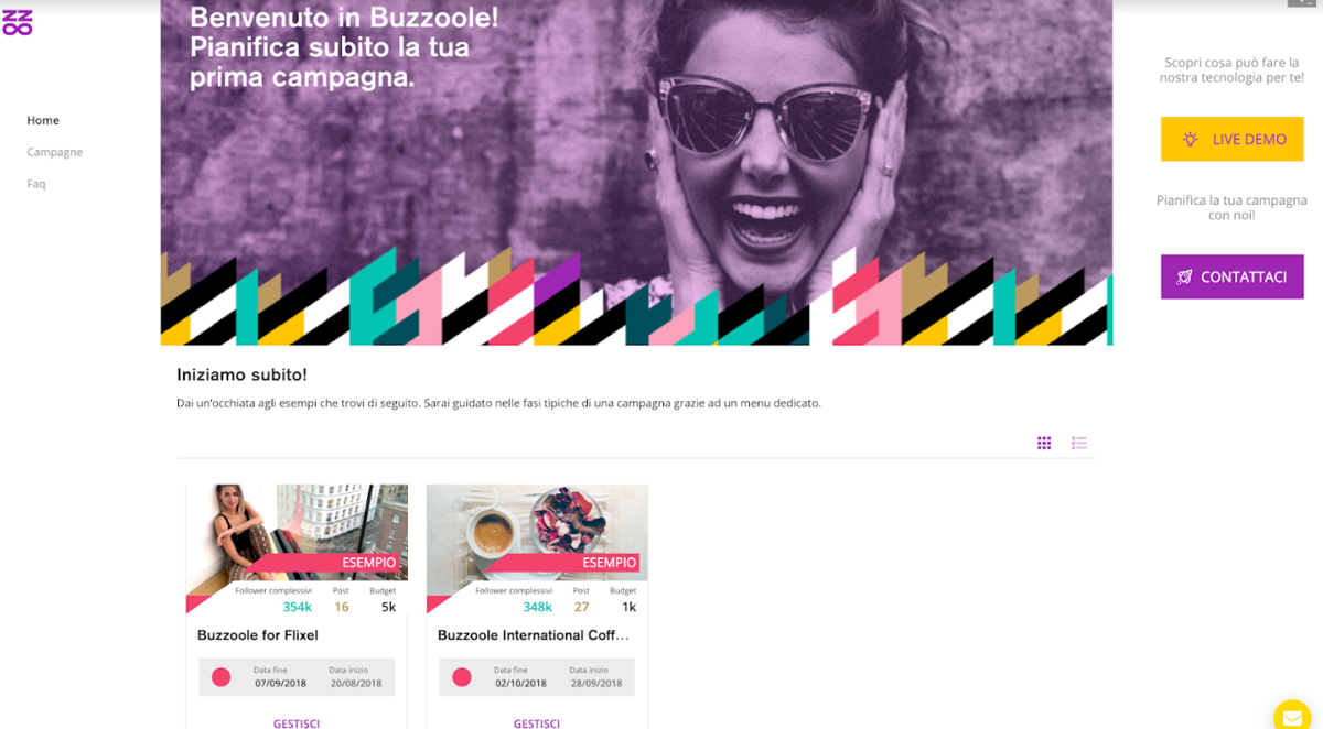 La nuova area è stata pensata anche per chi non hai mai avviato una campagna di Influencer Marketing con Buzzoole. Accedendo, i brand verranno guidati nell’avanzamento delle fasi salienti grazie ad una simulazione di campagna, in modo tale da prendere confidenza con tutte le funzionalità messe a disposizione da Buzzoole.
