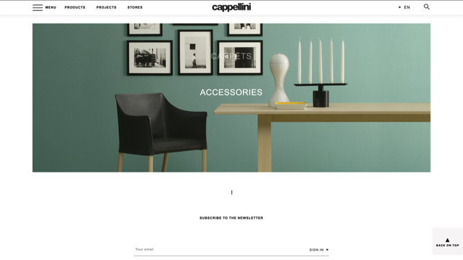 Cappellini investe nella comunicazione, come elemento necessario e complementare all’esperienza del brand, con il progetto di restyling del proprio sito, con la collaborazione di Leonardo Talarico. Ripensato nell’impianto grafico e nell’immediatezza di navigazione, arricchito di contenuti e di elementi coinvolgenti, Cappellini.com diventa uno spazio digitale di consultazione, d’ispirazione e di dialogo diretto con l’azienda.