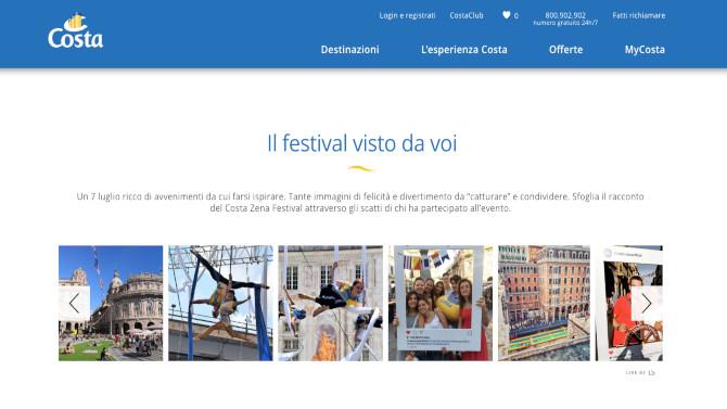 La pagina del sito web di Costa Crociere dedicata al Festival e alla mostra di Toscani è stata realizzata da Live Story, piattaforma di editorial commerce che, grazie alla sua tecnologia, ha integrato sul sito della compagnia le foto scattate e condivise sui social da coloro che hanno preso parte alla giornata, raccogliendo tutti i momenti di felicità vissuti e catturati dagli ospiti.