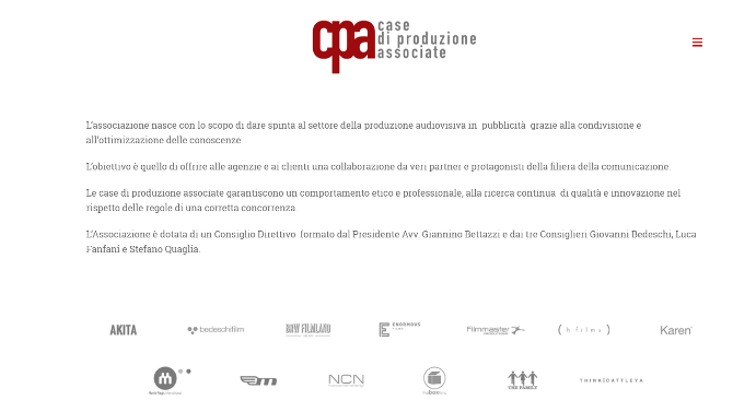 Il Consiglio Direttivo composto da Giovanni Bedeschi, Luca Fanfani, Stefano Quaglia dichiara: “Il sito di CPA raccoglie tutte le informazioni riguardanti la missione dell’associazione, i suoi regolamenti e gli strumenti che le case di produzione adotteranno d’ora in poi nel loro lavoro, con lo scopo di rendere semplice e diretta l’adesione di altre realtà produttive quanto la divulgazione al mercato di tutte le attività dell’associazione stessa”.