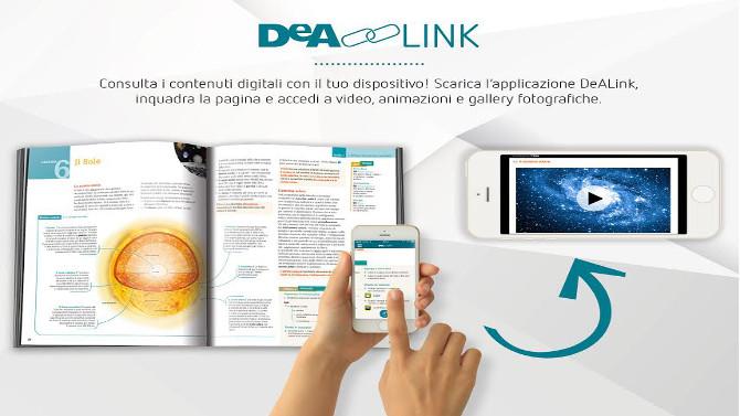 Dalla carta al digitale in un touch. De Agostini Scuola presenta DeA Link, l’applicazione che permette di accedere con smartphone e tablet ai contenuti multimediali del manuale scolastico direttamente dalla pagina del libro di carta.