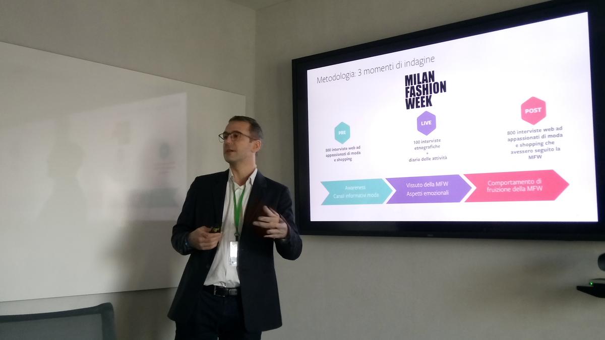 La conferenza di oggi presso la sede italiana di Facebook è stata anche l’occasione per presentare una ricerca, realizzata da Doxa, sull’uso dei social network in occasione della Milano Fashion Week di settembre 2016 (prima dell’evento: 800 interviste web ad appassionati di moda e shopping; durante: 100 interviste etnografiche e diario delle attività; dopo: 800 interviste web ad appassionati di moda e shopping che hanno seguito la Milan Fashion Week).