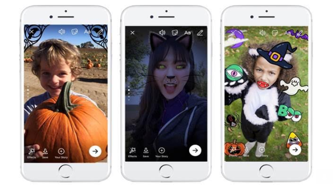 La sera di Halloween gli utenti potranno trovare nel news feed un messaggio di Facebook che augura buon Halloween e invita a entrare nello spirito della festa. Accedendo alla fotocamera, sarà possibile trovare più di dodici spaventose maschere e cornici, oltre a un modo più veloce per scattare una foto del tuo look di Halloween.