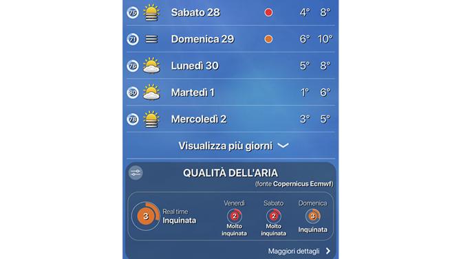 “Se l'obiettivo è quello di fornire ogni giorno previsioni sempre più affidabili - dice Emanuele Colli, amministratore delegato de iLMeteo.it - lo sguardo va nella direzione di pensare e realizzare nuovi servizi complementari che possano intercettare bisogni nascenti e aiutare i nostri utenti nella vita di tutti i giorni”. Nell'app, la valutazione dello stato dell'aria che respiriamo, ma anche mappe interattive per singoli inquinanti e previsioni dettagliate per i giorni a venire. “Le previsioni meteorologiche sono ormai parte integrante della nostra vita, in base al tempo non solo si sceglie come vestirsi, se uscire o meno con l’ombrello - prosegue l'ad - ma si prendono decisioni che riguardano il modo di spostarsi o di lavorare. Quello che vogliamo fare, anche attraverso aggiornamenti come questo, è essere sempre più vicini al nostro pubblico con un prodotto efficiente e immediato”.