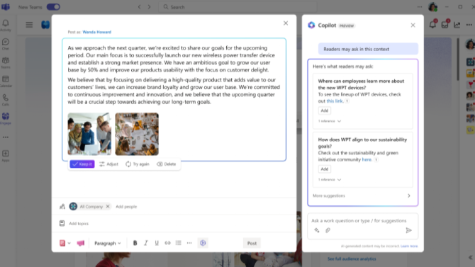 Maggiori informazioni sull’introduzione di Copilot in Microsoft Viva disponibili a questo link.