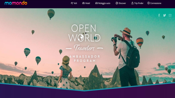 La piattaforma digitale di ricerca voli e hotel momondo chiama a raccolta quanti adorano viaggiare alla scoperta di nuovi mondi, immergersi in nuove culture e raccontare le proprie avventure sui social media, ingaggiandoli attraverso attività studiate ad hoc, prove e un programma di incentivi in tre livelli che premia l’entusiasmo, l’intraprendenza e la voglia di condividere.