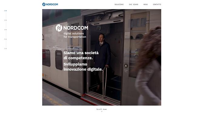 La focalizzazione sulle comunicazione delle attività centrali della società ha portato alla scelta di una struttura minimalista per il nuovo sito di Nordcom. L’homepage offre un’immagine di dinamicità utilizzando un video che mostra le aree di competenza della società. I mercati di riferimenti di NordCom sono presentati dalla sezione soluzioni: trasporto pubblico, (store online, sistemi di bigliettazione, app per passeggeri e SAP), pagamenti digitali (pagamenti per la PA, per la sanità, utilities e Università) e fibra ottica (fibra ottica spenta lungo i binari della rete Ferrovie nord insieme agli spazi tecnici nelle stazioni per il collocamento di apparati trasmissivi o antenne per la telefonia mobile). I singoli progetti realizzati e le ultime iniziative intraprese sono raccolte nella sezione news dove l’utente può venire a conoscenza dell’offerta NordCom o ispirarsi per chiedere un progetto personalizzato.