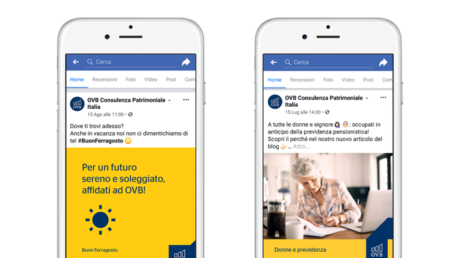 Un obiettivo doppio: da un lato raggiungere i potenziali clienti e dall’altro attrarre nuove risorse umane per ampliare il circuito di consulenti. Per raggiungerli IAKI ha realizzato una strategia multifunzionale basata sulla creazione di contenuti ad hoc differenziati per i singoli social in base alla tipologia di utenti: su Facebook, post con consigli e informazioni sul mondo assicurativo-patrimoniale per clienti e consulenti, attuali e potenziali; su Instagram, stories con le testimonianze di chi ha già scelto OVB e può raccontare e condividere la propria esperienza; su LinkedIn, infografiche descrittive sui servizi offerti dall’azienda e la segnalazione di appuntamenti formativi dedicati specificatamente ai futuri consulenti.
