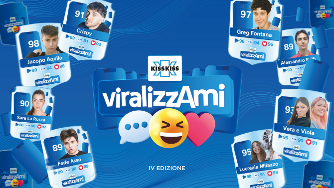 Dopo tre edizioni da record – oltre 200 milioni di impressions e 14 milioni di interazioni – Radio Kiss Kiss lancia la quarta edizione di ViralizzAmi, il social talent che mette in sfida otto creator scelti per partecipare al più grande esperimento di viralità italiana.