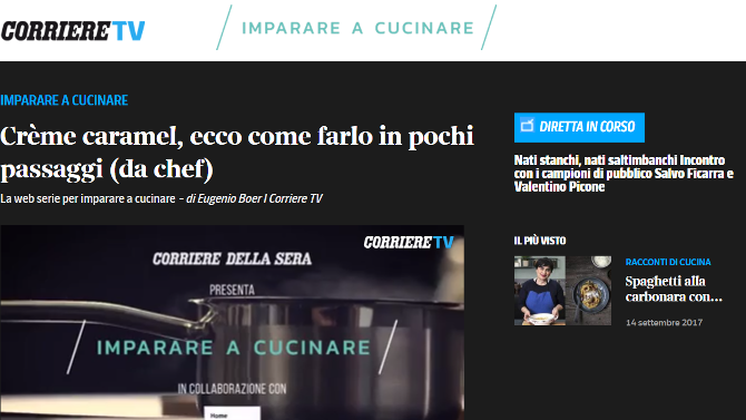 Ogni giovedì sul canale Cucina di Corriere una ricetta nuova, dal creme caramel all’uovo quasi poché, dalla meringa alla bistecca, dal risotto alla cotoletta, dalla verdura alla besciamella passando per pesce e pasta fresca, ricette passepartout, capaci di permettere a chiunque di mettersi ai fornelli e di preparare con semplicità un pranzo o una cena, dal primo piatto al dolce.