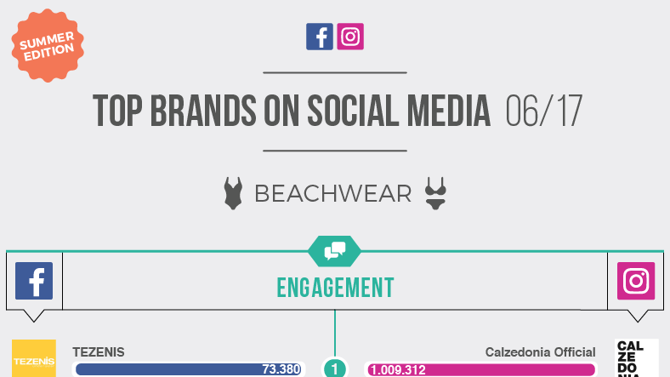 Al vertice della classifica di Facebook, troviamo Tezenis, il brand di punta del gruppo Calzedonia, che a giugno acquisisce 73.400 interazioni con una media di 5,7 post al giorno. Il contenuto che ottiene più successo sul social di Zuckerberg è una foto della campagna #tezenissmimwear con protagonista la travel blogger Mafalda Castro. Su Instagram, sempre Tezenis raggiunge quota 894.000 interazioni, che corrisponde al secondo posto sul podio, grazie allo strategico coinvolgimento di numerose social influencer del calibro di Nima Benati, Indes Arroyo e Federica Oignotti.